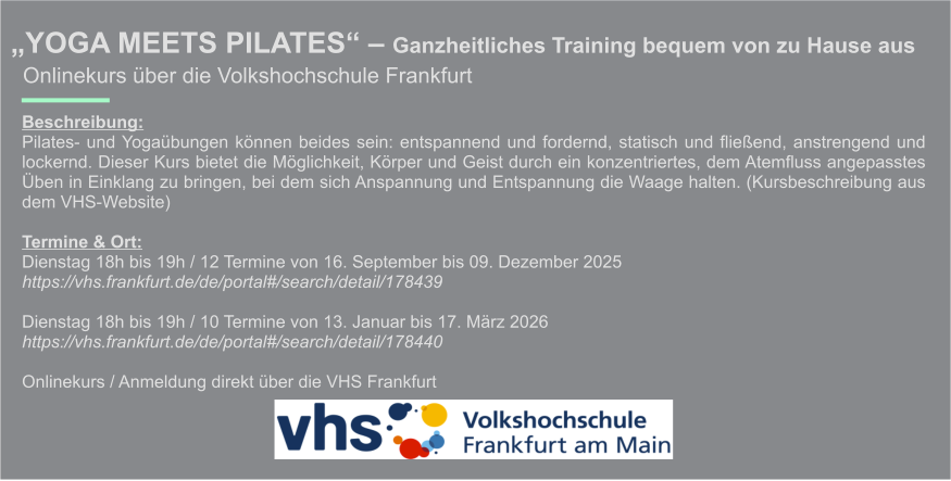 Durch Yoga bin ich in Berührung mit anderen Bewegungskurse gekommen. Dazu gehören zum Beispiel Pilates oder verschiedene Fitness- oder Rückenkurse. Ich finde diese Kursrichtungen auch spannend und ergänzend zu Yoga und habe mich deswegen entschieden mich weiterzubilden.